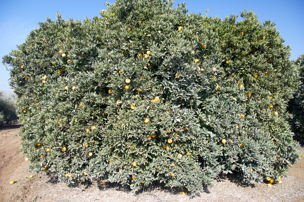 Navel orange tree, outside and inside.