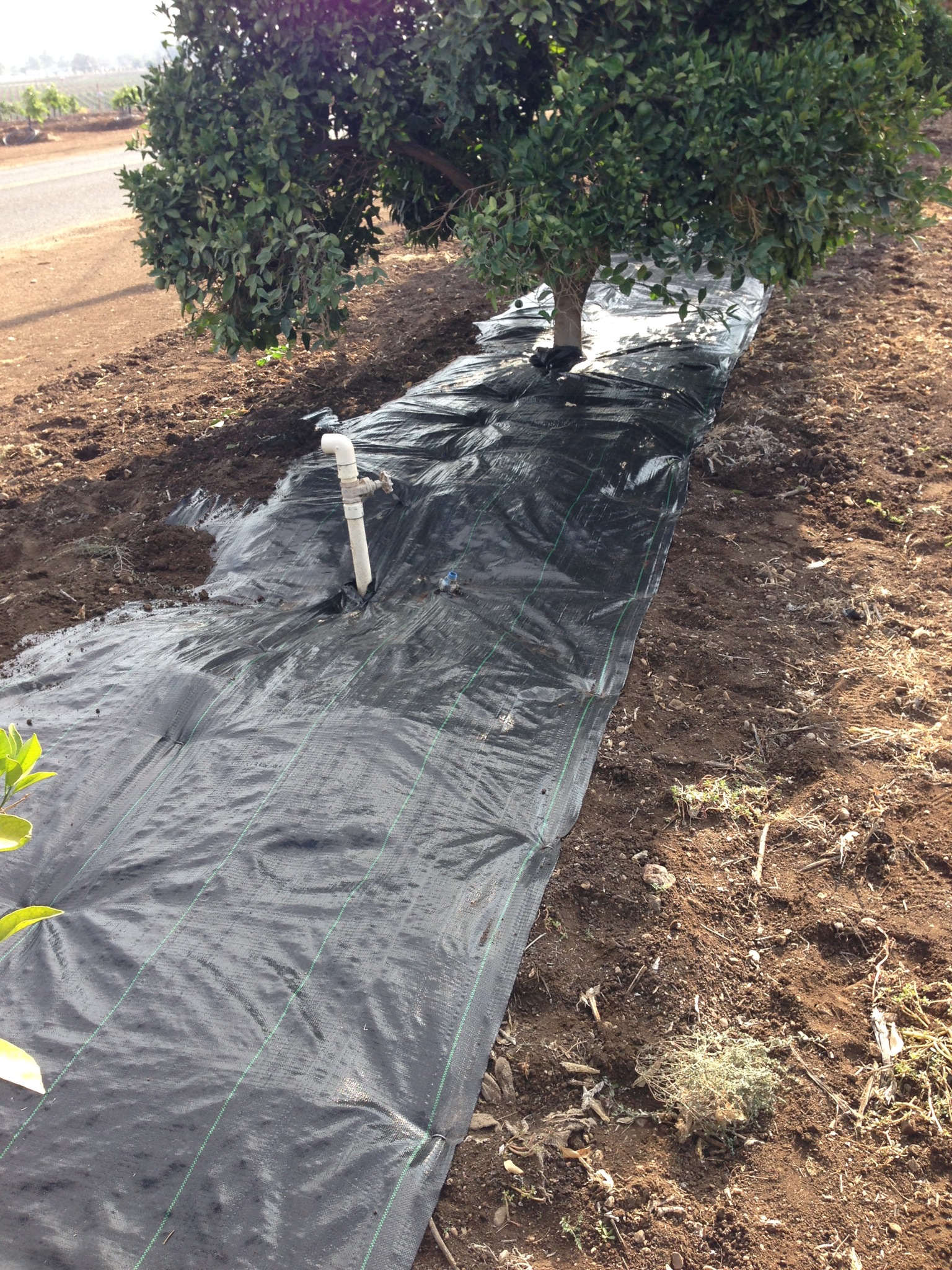 One of the biggest challenges of transitioning to organic is the weeds. They love to grow. And they take water and nutrients away from our trees. So how do we handle weeds organically? Discing the rows with the tractor and the old school hoe and a huge crew of people. But there is also weed mat. We hope that it will eliminate at least some of the weeds! We will keep you posted.